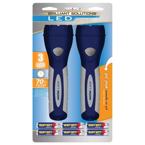 The Rayovac Brilliant Solutions Gel Grip 3 LED Light features 3 super bright LEDs that never need replacing. A magnifying lens offers a long range beam and the soft gel grip incorporated into the handle means added comfort. Convenient combo pack.